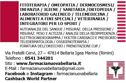 La Farmacia Nuova Bellaria è nata con l’intento di promuovere uno spirito diverso nel rapporto con la clientela che si affaccia al farmaco: abbiamo l’intenzione di fornirti un servizio a 360°, a ccompagnandolo con la cortesia che si merita chi ha bisogno di cure e di assistenza. Da noi non troverai solo una “dispensa di farmaci”, ma un vero e proprio mondo. a tua disposizione, pensato per darti l'opportunità di prenderti cura di te al meglio.